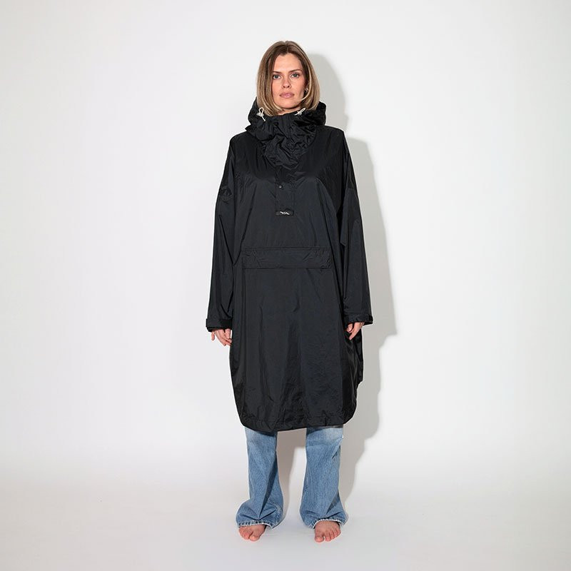 Kalmas regnkappa kan bli både liten och stor då den lätt packas till en liten påse genom fickan på magen samtidigt som den passar alla storlekar med sin generösa passform. Dessutom har den smarta funktioner som skydd över ansiktet och dragsko i luvan för att skydda dig även i de mest regniga väder. Eftersom den kan packas ihop till en liten påse är det enkelt att förvara den i väskan och ta fram när vädret växlar.